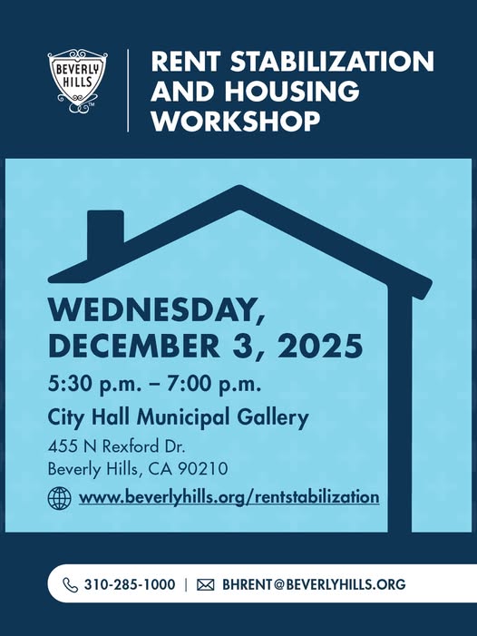 BEVERLY HILLS—On Wednesday, December 3, the city of Beverly Hills will be hosting a Rent Stabilization and Housing Workshop. The event will allow individuals to learn more about Rent Registry and how it can benefit them.