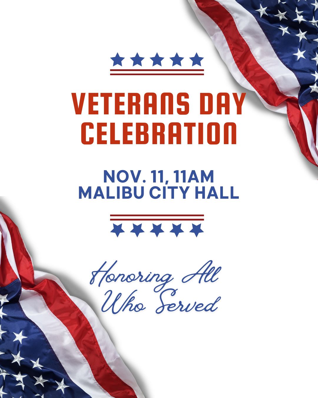 MALIBU—The city of Malibu will be hosting the 26th Annual Veterans Day Ceremony to honor the men and women who served in the U.S. Armed Forces. The event is a partnership hosted with the Malibu Navy League, Pepperdine University, and the Malibu Association of Realtors, Tuesday, November 11, at 11 a.m. at Malibu City Hall (23825 Stuart Ranch Road). The event is free to attend; no RSVPs are needed.