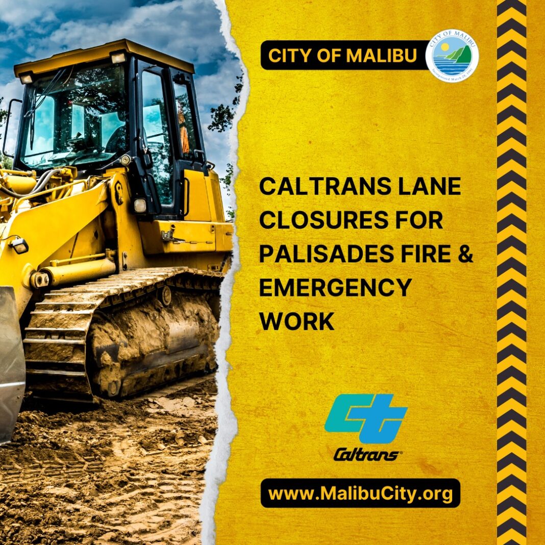 MALIBU—The city of Malibu posted on its Facebook page on Friday, August 29 that Caltrans will have road and lane closures for Palisades Fire and Emergency work that will be conducted on Pacific Coast Highway and Topanga Canyon Boulevard.