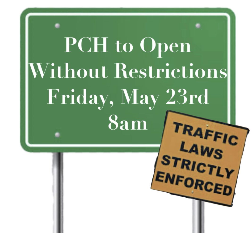 MALIBU/TOPANGA CANYON—The Los Angeles County Sheriff’s Department Lost Hills Station revealed on Thursday, May 22, that Pacific Coast Highway is expected to reopen without restrictions on Friday, May 23 at 8 a.m.